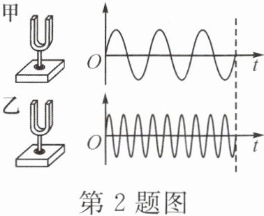 2. 如图是敲响两个不同音叉发出的声音的波形图,其中甲音叉的振动频率