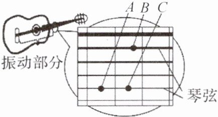 (5)如图所示,请你判断在琴弦松紧程度相同的情况下,分别按住A点、B点、C点后拨动琴弦,发出的声音音调最高时按住的是