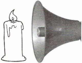 3. 如图所示,将一支点燃的蜡烛放在扬声器的前方,当扬声器发出较强的声音时,可以看到烛焰随着音乐的节奏晃动。扬声器的纸盆由于