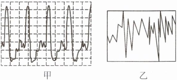 2. 如图甲、乙所示的两幅声音波形,可能是钢琴声音波形或泡沫塑料块刮玻璃时产生的噪声波形。下列判断正确的是(