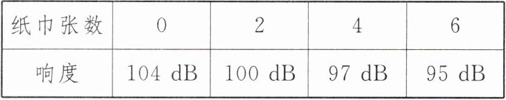 为了更准确地比较隔音效果,小明使用分贝仪进行响度的测量。选用纸巾进行实验,改变包裹声源的纸巾的张数,在