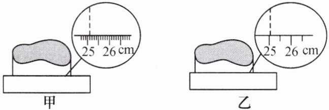 11. 通常情况下,人站立时的身高是脚长的7倍,如图是小明用两把分度值不同的刻度尺测出自己脚长的图片。
