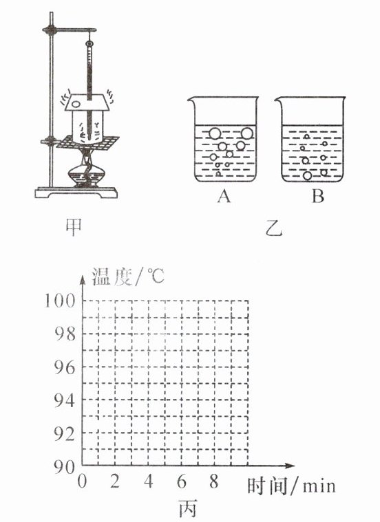 (填“A”或“B”)是水沸腾后的情况。(3)根据实验数据在图丙中描点画出温度随时间变化的图像。