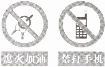 2. 如图所示,加油站都有这样的提示:“熄火加油”“禁打手机”等。这是为了防止火花点燃汽油蒸气引起火灾,因为常温下液态的汽油容易发生(