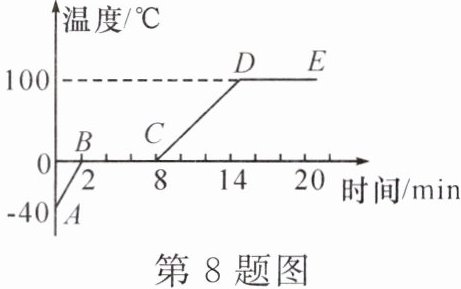8. (多选)(2024·曲靖沾益区期中)小美同学对冰加热,她将冰熔化成水直到沸腾的过程,绘制成如图所示的温度随时间变化的图像。则下列说法正确的是 (