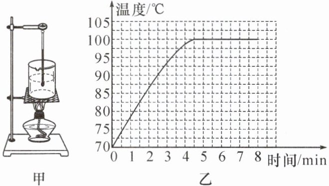 (填“自下而上”或“自上而下”)的顺序。(2)用酒精灯加热,当水温接近70℃时每隔1min记录一次温度,同时观察水中的气泡情况。直至5min后观察到水中形成大量的气泡不断上升、变大,说明水