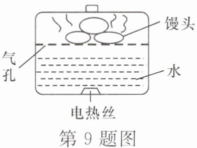 9. 如图所示,用电蒸锅蒸馒头时,电热丝加热使水