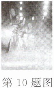10. 学校联欢晚会上,道具组同学用干冰(固态二氧化碳)在舞台上制造出云雾缭绕、宛如仙境的特效,如图。这是因为干冰在