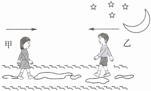 (填“镜面反射”或“漫反射”)。如图所示,人在月光下行走,为了不踩到地上的积水,甲同学迎着月光走,应走暗