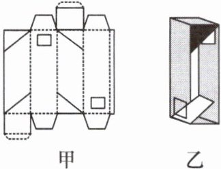 12. 制作潜望镜时,买两面小镜子,用一个长方形硬纸板制作成镜筒,宽度比小镜子稍大。两块平面镜分别安装在镜筒的上下两端,两块平面镜互相平行,都与水平方向成$45^{\circ}$角,就制作成了一个简单的潜望镜,如图甲、乙所示。