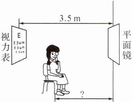 8. 视力检测时要求被测的人与视力表的距离为$5m$。如图所示,视力表与平面镜的距离是$3.5m$,为满足检测要求,人与平面镜的距离应为(