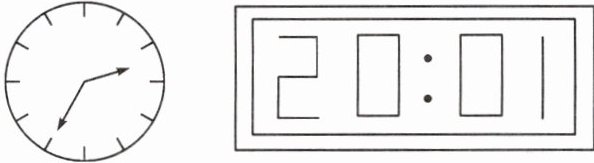 10. 小明从平面镜里看到镜子对面石英挂钟和电子钟所成的像如图所示,这时石英挂钟和电子钟显示的时间分别是