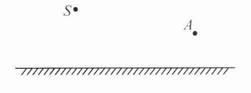 11. (2024·绥化)请根据平面镜成像特点,作出点光源$S$发出的光经平面镜反射后通过$A$点的光路图(保留作图痕迹)。