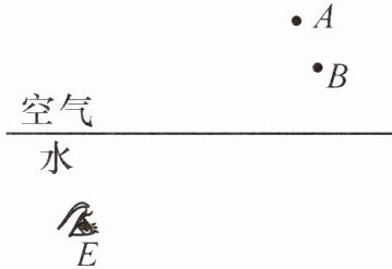 (填“$ A $”或“$ B $”)点是像所在的位置,在图中画出水下 $ E $ 处的潜水员看到路灯的光路图。