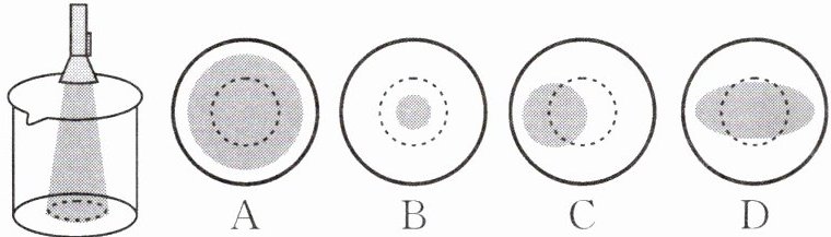 11. 如图所示,一束光照射到一个空的烧杯的底部,形成的光圈用虚线表示,若往烧杯中注满水,烧杯底部的光圈会变为(