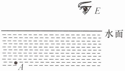 16. (2024·广西)了解水深,防止溺水。人在岸边看水池池底的发光点 A,感觉该点的位置升高,池水看起来比实际的浅。请在图中画出从 A 点发出的光进入人眼 E 的光路图。