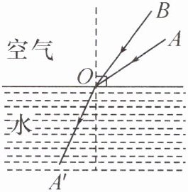 13. 如图所示,OA'是入射光线 AO 的折射光线,请在图中画出入射光线 BO 的反射光线和该入射光线在水中的折射光线的大致方向。