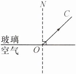 10. (2024·通辽)一束光从玻璃斜射入空气中时,在玻璃与空气的交界面上发生了反射和折射,反射光线 OC 如图所示,请在图中画出入射光线 AO 和折射光线 OB 的大致方向。