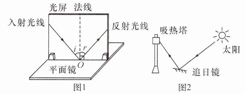 。(6)光热电站利用追日镜将太阳光反射到吸热塔用于发电。如图2为上午某时刻的光路图,根据上述实验结论推断,随着太阳的运动,追日镜应沿
