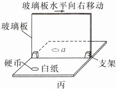 (4) 完成实验后,小红同学又将一枚硬币放在玻璃板前,能看到它在玻璃板后的像在 a 位置,如图丙所示,若将玻璃板水平向右移动 3 cm,则该硬币的像