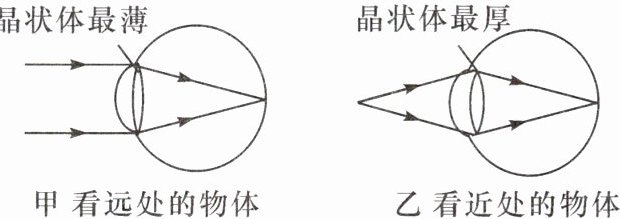 到凸透镜的距离不变,图中甲、乙分别是人眼观察远处和近处时晶状体的情况,分析可知,当人眼在观察物体时,物体由远处向人靠近时,晶状体厚度变厚