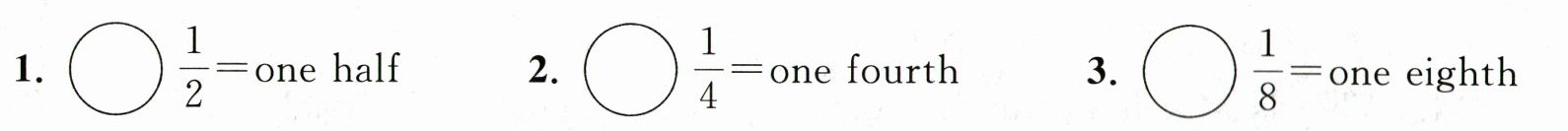 “How many pieces do I have now, Roy?” Dad asks. “Two,” says Roy. “Right. So what do we call each piece?” “A half,” answers Roy. Dad nods, raises the knife again and slices each half in half again. “Half of a half makes what?” Roy thinks for a while. “Each one is a quarter, right?” Dad smiles. “But how about a half of a quarter?” “I don't know,” says Roy. “Sure you do. Think about this. We have a half. A half is 1 over 2. Then we have a quarter. It is 1 over 4. If the bottom number(底数) doubles, what would it be?”