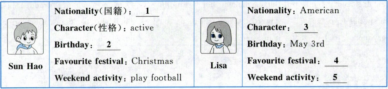一 听两遍录音,根据所听内容,选择合适的选项补全信息卡。(5分)