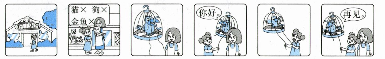 want a cat, a dog or a goldfish. She wants a special pet. The woman in the shop says, “Here's a special pet. It's a parrot. It's very beautiful and clever