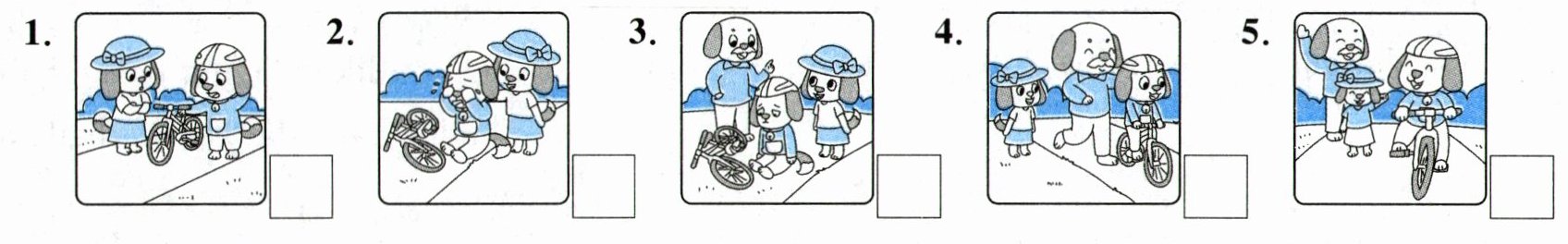 E. Mica is sad. “I can't ride my new bike.” Dad comes and says, “I can help.”