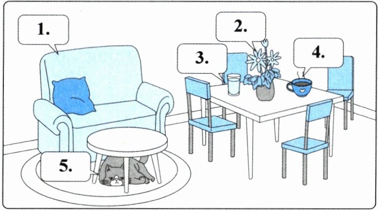 )5. A. The schoolbag is under the chair. B. The schoolbag is under the desk. C. The schoolbag is on the desk.
