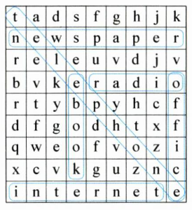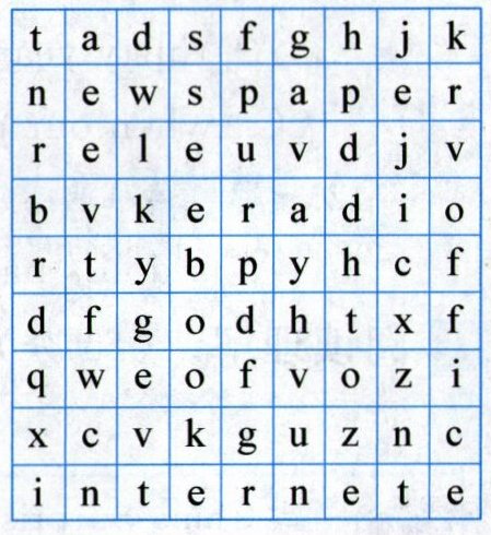1. telephone 2. Newspaper 3. radio 4. Internet 5. office 6. e-book