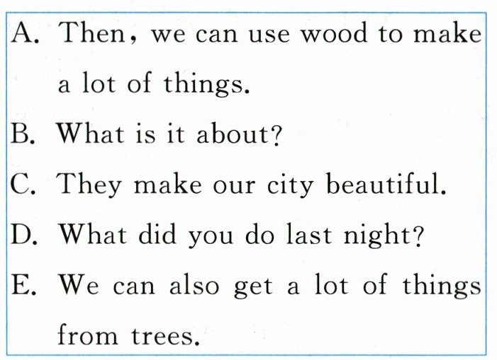 David: I know. The book tells us that trees help people a lot and we should help trees too.