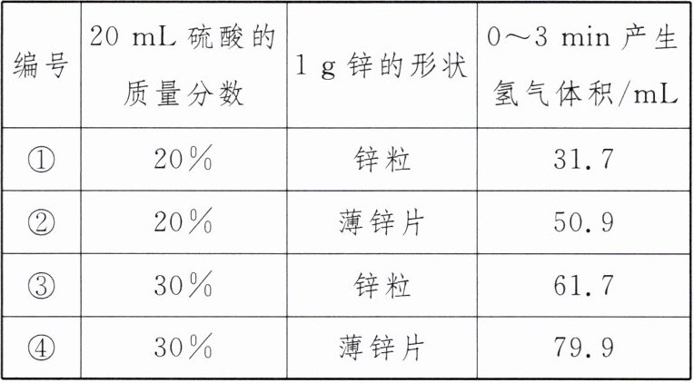 16. 科学思维 对比分析 下表为某核心期刊刊文中氢气制取对比实验的数据(将锌粒压成薄锌片增大了表面积)。下列不能由实验得出的结论是(