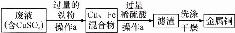 16. 科学思维 分析判断 某工厂废液中含有$CuSO_4$(其他成分不含铜元素),现通过以下流程回收金属铜。