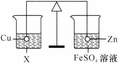 14. 新考向 跨学科融合 如图所示,在杠杆的两端分别挂着质量相同的铜球和锌球,这时杠杆平衡,然后将两球分别浸没在$X$、$FeSO_4$溶液中,一段时间后移走烧杯。下列有关说法正确的是 (