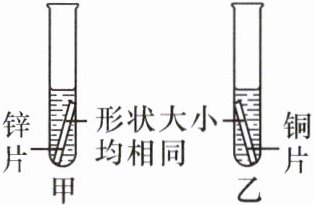 B.若向甲、乙试管加入稀盐酸,只有锌片表面能产生气泡