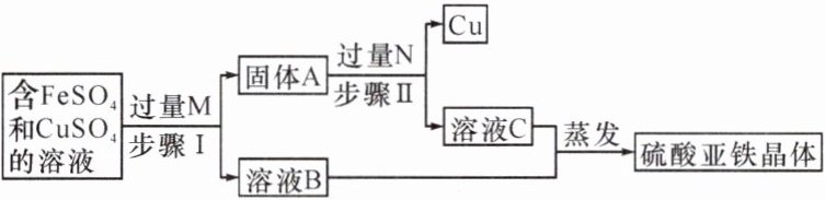 (5) 铜的回收:某工厂的废水经预处理后得到含${FeSO_{4}}$和${CuSO_{4}}$的溶液。为了减少污染并促进废物利用,工厂设计以下流程回收${Cu}$和${FeSO_{4}}$。