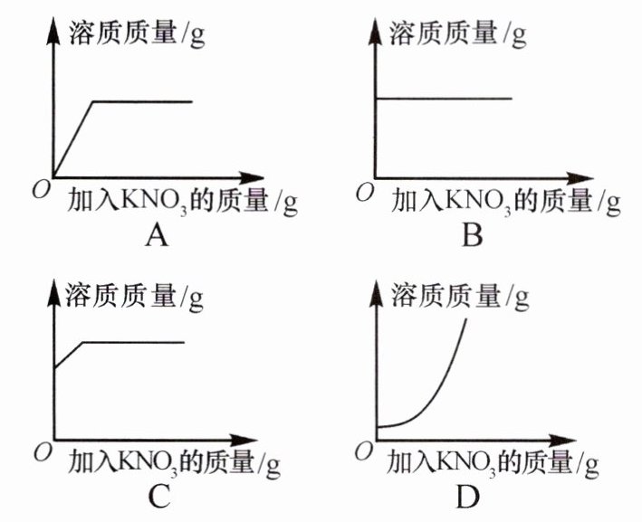 12. 25℃时,向一定量不饱和的$KNO_{3}$溶液中逐渐加入$KNO_{3}$固体,则下列图像中能正确表示此过程中溶质质量变化规律的是( )