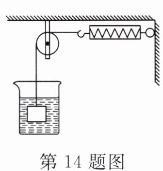 14. 新考向 跨学科融合 如图所示,一物体悬挂在饱和氯化钠溶液中,在恒温条件下向烧杯内溶液中分别加入下列物质,说明弹簧测力计读数变化情况。(填“变大”“不变”或“变小”)
