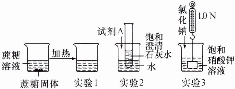 (1)实验 1:观察到加热后蔗糖固体消失,说明温度升高,蔗糖溶解度