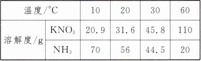 9. 压强为$101kPa$时,硝酸钾和氨气在不同温度下的溶解度如下表。下列说法正确的是(