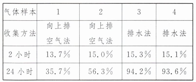 (1)从表格中对比可知,收集二氧化碳气体纯度更大的是(填“排水法”或“向上排空气法”),二氧化碳可以用排水法收集的原因是。