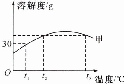 )A.$t_1℃$时,甲的溶解度为30