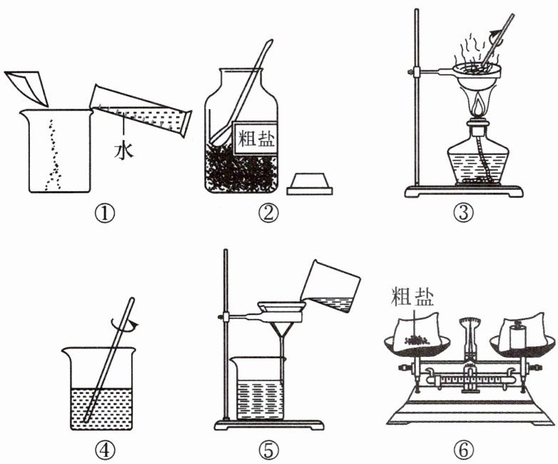 )①溶解步骤中,粗盐未充分溶解 ②过滤步骤中,得到的滤液浑浊 ③蒸发步骤中,有液滴飞溅现象 ④蒸发步骤中,得到的固体潮湿