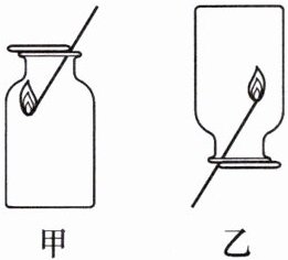 (2) 另取一瓶氧气,倒立后将带有火星的木条伸入瓶中(如图乙所示),木条也复燃了,但在乙中燃烧不如在甲中燃烧旺。该实验说明氧气具有的物理性质是