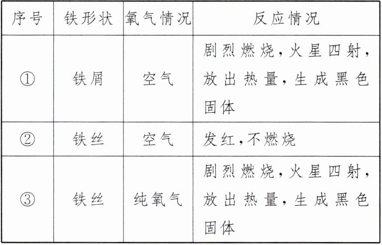 Ⅲ. 如表是不同形状的铁与不同浓度的氧气的反应情况比较: