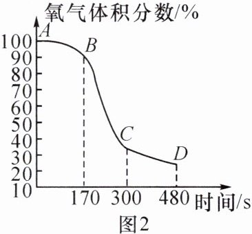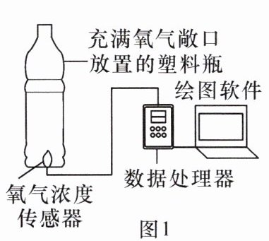 (1)如图1,打开氧气浓度传感器的开关,实验进行至170 s时绘制出图2中曲线AB段,接下来用手给塑料瓶外壁加热130 s,绘制出曲线BC段,对比曲线AB段和BC段,分析推理氧分子具有的特征是_______。