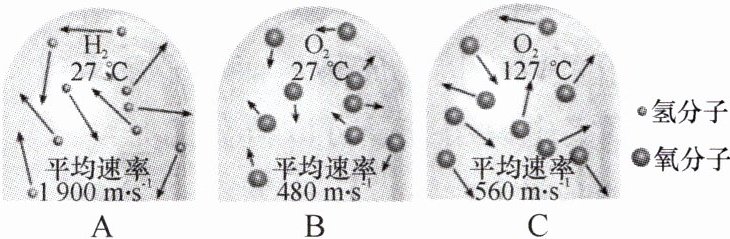 13. 模型是联系宏观与微观的桥梁。如图所示是氢分子和氧分子运动的示意图。