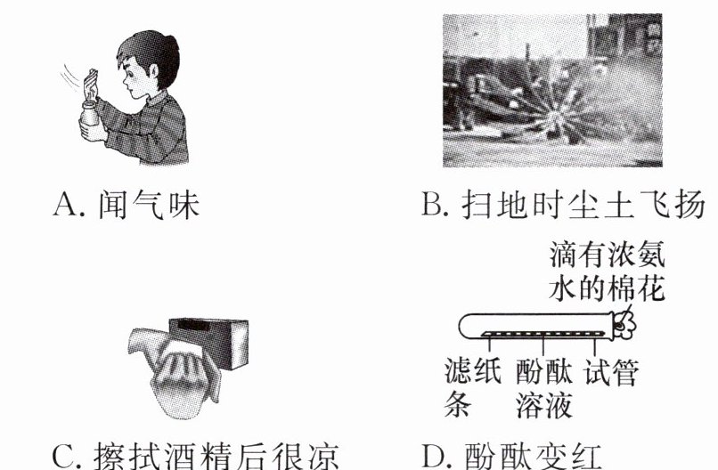 10. (2024·东营)小东同学将少量医用酒精涂在手背上,先感到手背凉凉的,后闻到了酒精的气味,一会儿发现酒精不见了,气味也变淡了。下列说法错误的是(