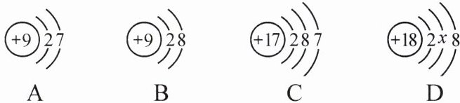 17. 下图中A、B、C、D是四种粒子的结构示意图,请回答下列问题。